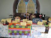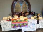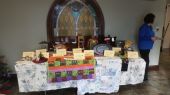 There was a basket raffle with many different theme baskets and also gift cards. Some of the basket themes included: game night (snacks and boardgame for family game night); coffee (coffee and mugs); car wash (bucket and car washing supplies); breads; wine bottles; wine supplies; Equal Exchange (with Equal Exchange coffee, chocolates, mugs, and nuts); date night giftcards; massage gift card; artwork; restaurant gift cards; various food themed baskets; and many, many more. We had so many baskets this year that we set a new record in basket raffle sales! Thank you to all!