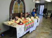 We had delicious food for sale: homemade candy, soup, baked goods, bar-b-que, breakfast sandwhiches, pastries, chow chow, and other canned goods. Light breakfast items and lunch were available all day.
