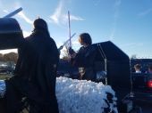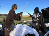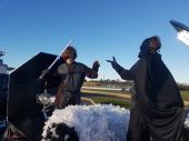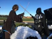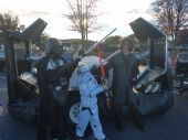 On Sunday, November 6, the float was assembled on the truck, our participants put on their costumes and headed to Conrad Weiser Hight School, where we made a few last minute adjustments, and strapped in our two actors: Darth Vader and Anakin Skywalker. As we headed down Penn Ave, the battle within began.