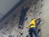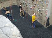 Below you will see pictures of our youth group and adult leaders climbing and belaying (operating the safety ropes).